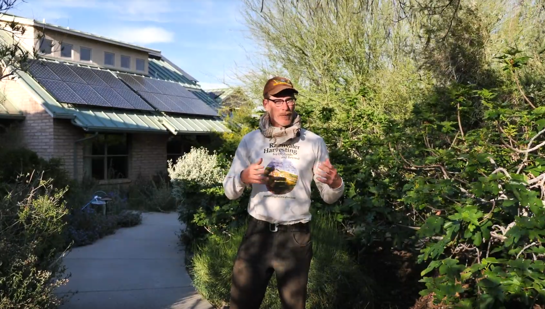 Dryland-harvesting home hacks sun, rain, food & surroundings Join Kirsten Dirksen as she tours with Brad around his home, his and his brother’s urban-Tucson property, and the surrounding neighborhood, learning about their harvests…