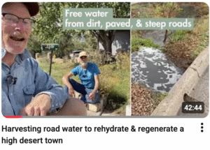 Brad Lancaster with the muffin tin demonstration compares FUNCTIONAL landscapes with water-HARVESTING topography to DYSFUNCTIONAL landscapes with water-DRAINING topography. Water-harvesting landscapes also capture and grow organic matter, soil fertility, and the living sponge;…